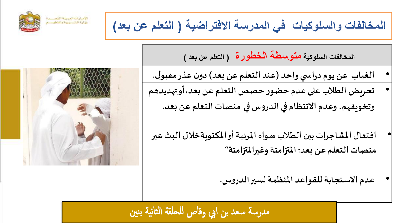 لائحة إدارة سلوك الطلبة في التعلم عن بعد أخبار التربية الفصل الثاني 2019 2020 المناهج الإماراتية