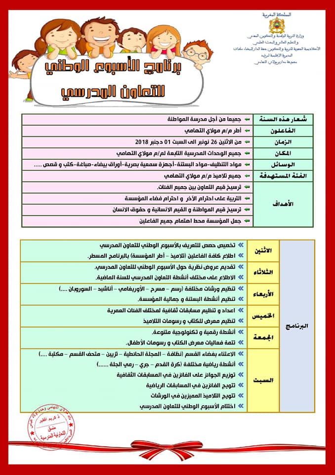 برنامج الأسبوع الوطني للتعاون المدرسي