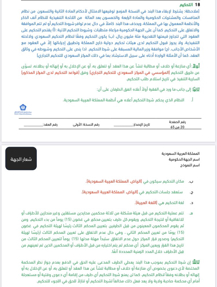 حسان السيف A Twitter اعتمد وزيرالمالية نماذج العقود الإدارية لنظام المنافسات الجديد متضمنة شرط التحكيم إذا كانت قيمة العقدفوق١٠٠ مليون بشرط موافقةوزيرالمالية على شرط التحكيم وهذا التوجه سيعزز مكانة التحكيم كبديل لحل