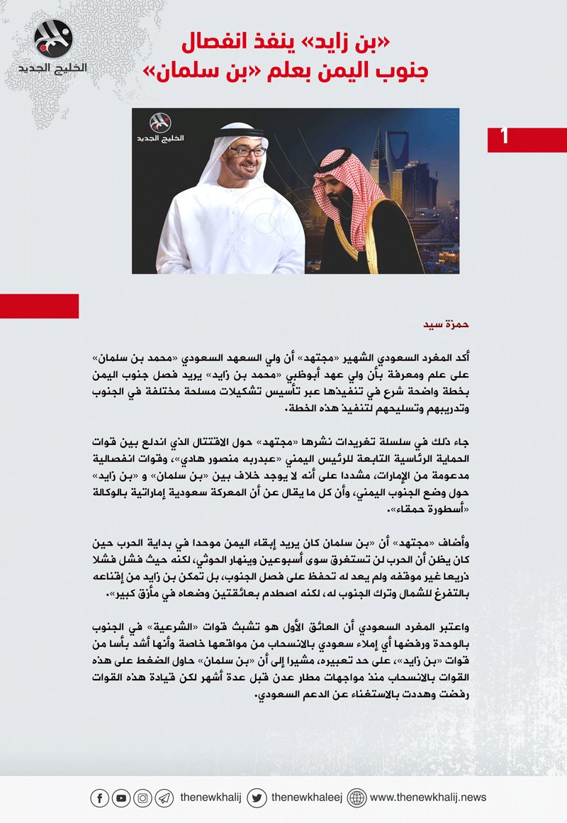 الخليج الجديد عاجل On Twitter بن زايد ينفذ انفصال جنوب اليمن بعلم بن سلمان Https T Co H7xvbdz8ee رابط بديل Https T Co Dyvzq49n89