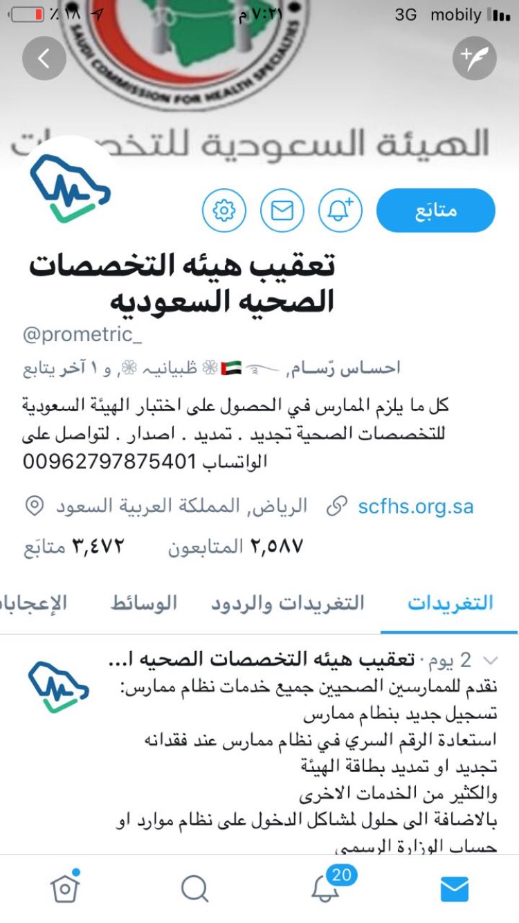 هـ يـ ئـ ة الـ تـ خـ صـ صـ ا ت الـ صـ حـ يـ ة Ar Twitter هيئة التخصصات الصحية